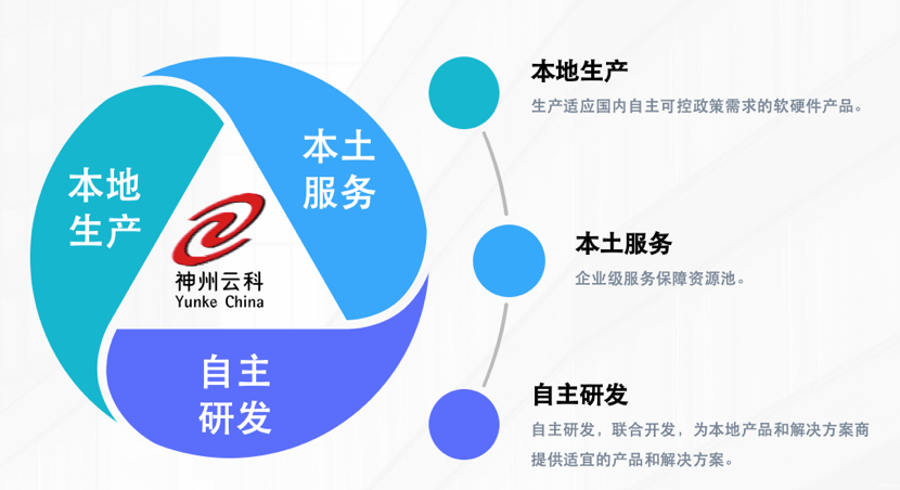 紧跟国家自主可控战略,3044永利集团通过“本地生产、本土服务、自主研发”的战略路径,打造自主品牌、生产自主产品,为合作伙伴提供神州数码自主品牌、自主知识产权的云基础设施产品、服务及解决方案。
