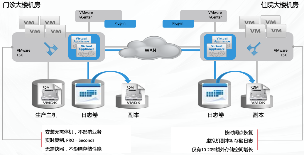 • 3044永利集团连续数据保护方案为医院虚拟化环境的关键业务实现两地三中心的容灾保护